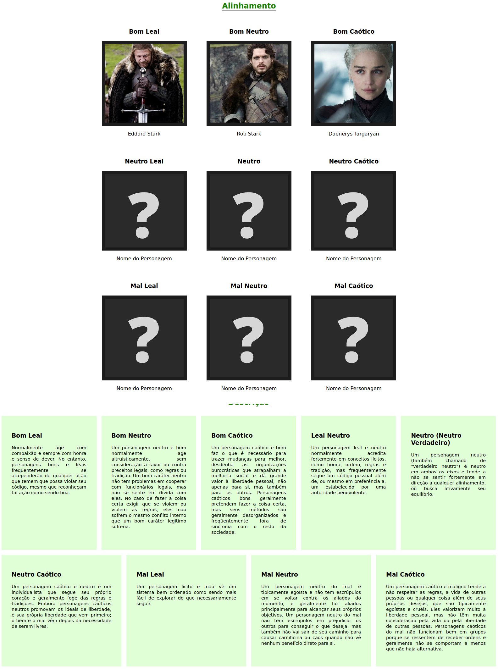 Utilize imagens de personagens para ilustrar sua página. Você pode utilizar este arquivo de imagens de Game Of Thrones como referência